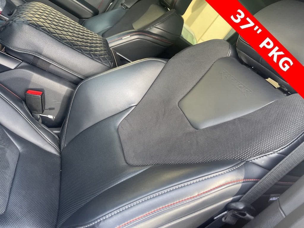 THIS VEHICLE IS EQUIPPED WITH THE FOLLOWING OPTIONS AND FEATURES: Equipment Group 802A Raptor 37 (Alcantara Suede & Leather RECARO Front Seats, Carbon Fiber Interior Appliques, Dual Valve Shocks, Modular Front Bumper, and Wheels: Raptor 37 Unique 17 Cast Aluminum), 4WD, 14 Speakers, 17 Cast Aluminum Wheels, 4-Wheel Disc Brakes, ABS brakes, Adaptive suspension, Adjustable pedals, Air Conditioning, Alloy wheels, AM/FM radio: SiriusXM with 360L, Auto High-beam Headlights, Auto tilt-away steering wheel, Auto-dimming door mirrors, Auto-dimming Rear-View mirror, Automatic temperature control, Brake assist, Bumpers: body-color, Compass, Delay-off headlights, Driver door bin, Driver vanity mirror, Dual front impact airbags, Dual front side impact airbags, Electronic Locking w/4.10 Axle Ratio, Electronic Stability Control, Emergency communication system: SYNC 4 911 Assist, Front anti-roll bar, Front Bucket Seats, Front Center Armrest, Front dual zone A/C, Front fog lights, Front License Plate Bracket, Front reading lights, Front wheel independent suspension, Fully automatic headlights, Garage door transmitter, Heads-Up Display, Heated door mirrors, Heated front seats, Heated rear seats, Heated steering wheel, Illuminated entry, Lane Departure Warning System, Leather Trim Seats, Low tire pressure warning, Memory seat, Navigation system: Connected Navigation, Occupant sensing airbag, Outside temperature display, Overhead airbag, Overhead console, Panic alarm, Passenger door bin, Passenger vanity mirror, Pedal memory, Power door mirrors, Power driver seat, Power passenger seat, Power steering, Power windows, Radio data system, Radio: B&O Unleashed Sound System by Bang & Olufsen, Rain sensing wipers, Rear reading lights, Rear step bumper, Rear window defroster, Remote keyless entry, Retractable Tonneau Pickup Box Cover, Security system, Speed control, Speed-sensing steering, Split folding rear seat, Steering wheel memory, Steering wheel mounted audio controls, SYNC 4 w/Enhanced Voice Recognition, Tachometer, Telescoping steering wheel, Tilt steering wheel, Tough Bed Spray-In Bedliner, Traction control, Trip computer, Turn signal indicator mirrors, Twin Panel Moonroof, Variably intermittent wipers, and Ventilated front seats. Recent Arrival!